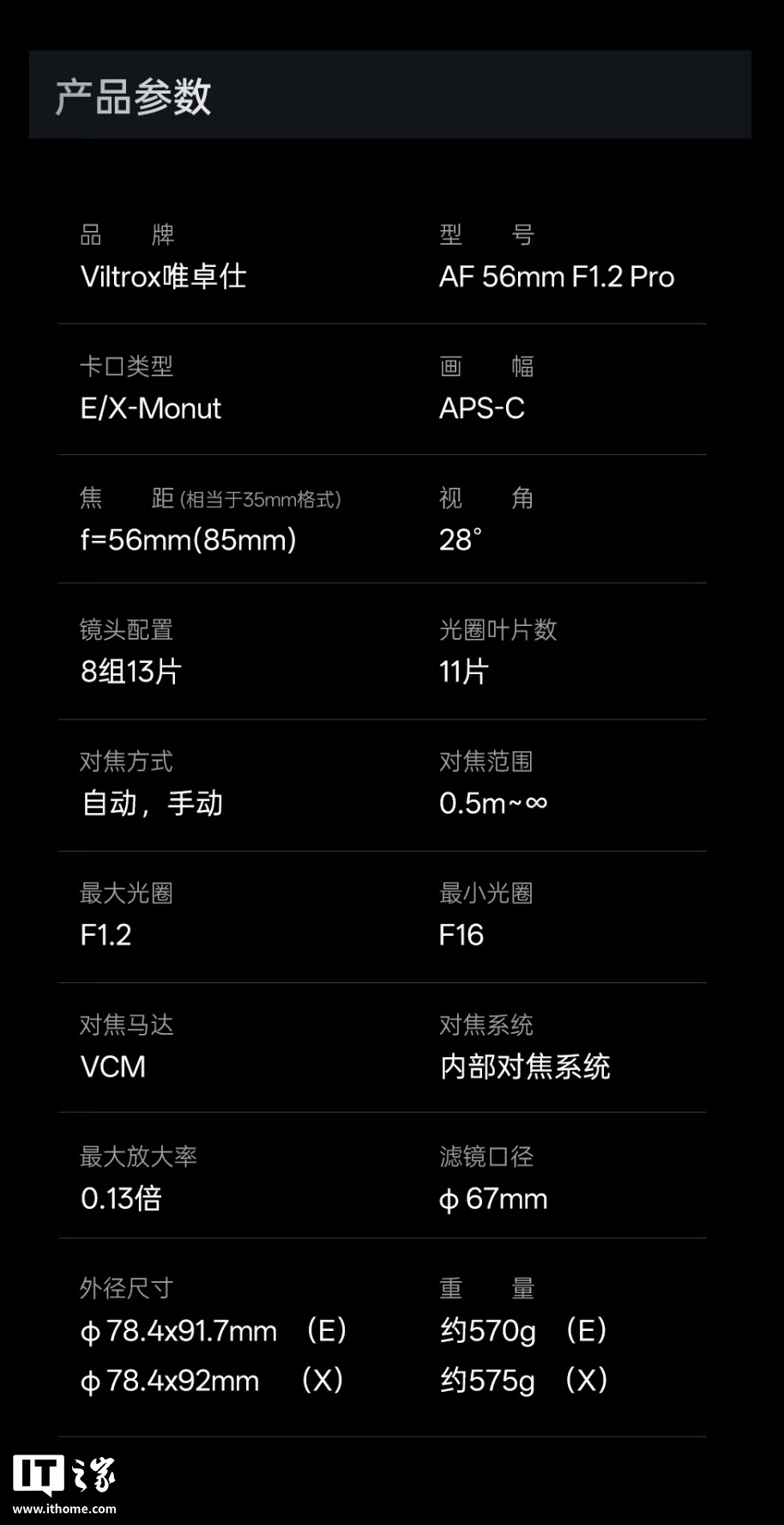 IT之家 9 月 1 日消息,整体重量低至 570 克,唯卓仕在今天的新品发布会中正式推出了 AF 56mm F1.2 Pro(APS-C)镜头,定价 3499 元(首发价 3459 元)。口令等形式),除了拍照外也同样强调视频表现,二维码、最近对焦距离 0.5m,