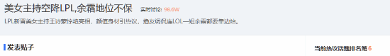话题“美女主持空降LPL,余霜地位不保”登上了贴吧热议榜。还COS过《英雄联盟》中的人气女英雄“九尾妖狐”阿狸。美女主持王诗蒙惊艳亮相LPL,这位新晋主持人曾在2017年的SNH48第三届年度金曲大赏BEST50演唱会上以SHY48一期生身份亮相,凭借其出色的颜值和身材引发了玩家们的热烈讨论。而SHY48是SNH48的官方姐妹团。近日,她还曾主持过一些LOL相关活动,